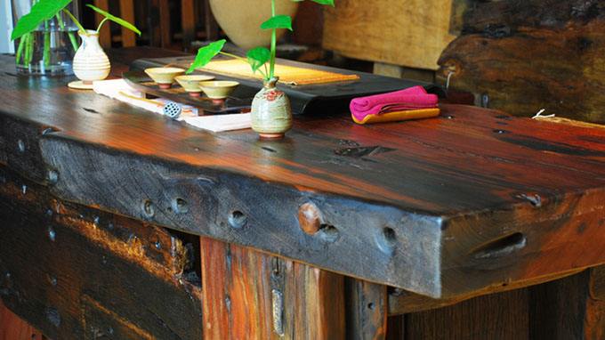 其中還有一種現象是,老船木,也是可入列“森活木”的,而老船木,其實從根本上說,仍然是稀有的紅木種類,像黃花梨、紫檀、花梨木、酸枝木、雞翅木、柚木等。但是老船木,因為在大海、江河中行駛了很多年,經歷了長期的海水浸泡,風吹雨打,有一種特殊的味道,滄桑感,甚至孔眼等都是天然形成的,所以辦公裝修等工裝,或別墅裝修裝潢等家裝中的老船木家具,有獨特的美感,是人工很難做出來的。
